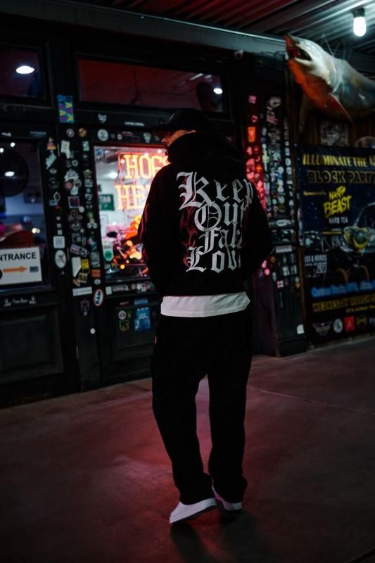 昨今のファッション業界に蔓延る流行とハイプばかりを追求する風潮に疑問を抱き、ブランドテーマとして「KEEP OUT FAKE LOVE(偽物の愛を拒絶する)」を提唱し、リアルな人々によるブランドに対する真の愛を追求し続ける。