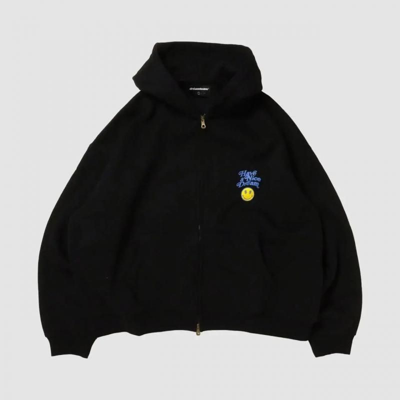胸元にHave a Nice Dreamの文字とスマイリーデザイン、バックにHave a Nice Dreamの発砲プリントを施したクロップド丈のジップアップパーカー。