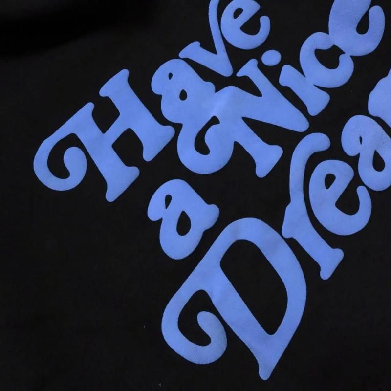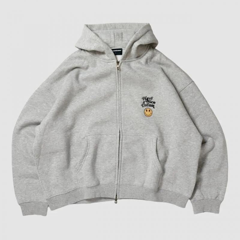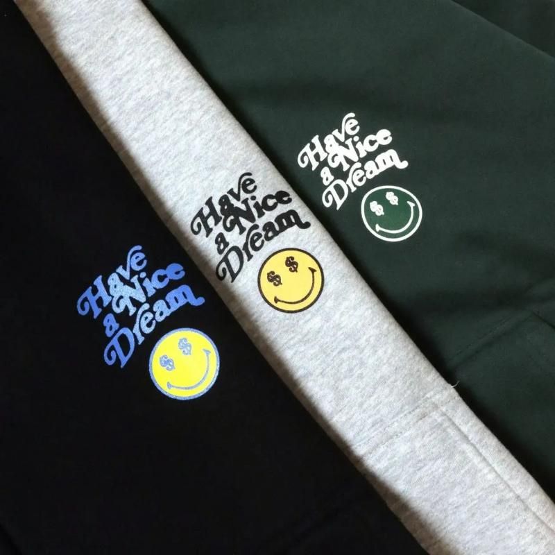 胸元にHave a Nice Dreamの文字とスマイリーデザイン、バックにHave a Nice Dreamの発砲プリントを施したクロップド丈のジップアップパーカー。
