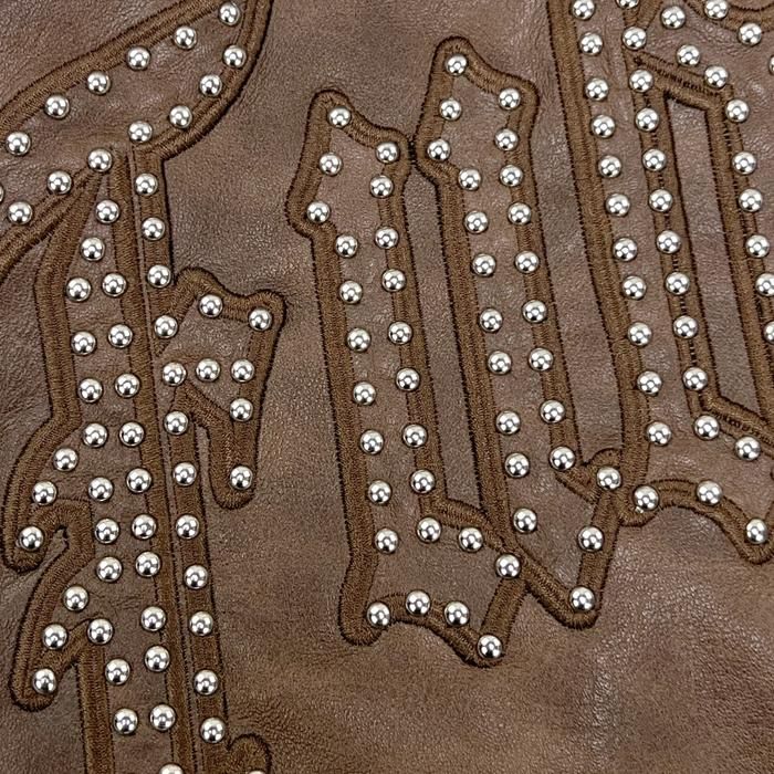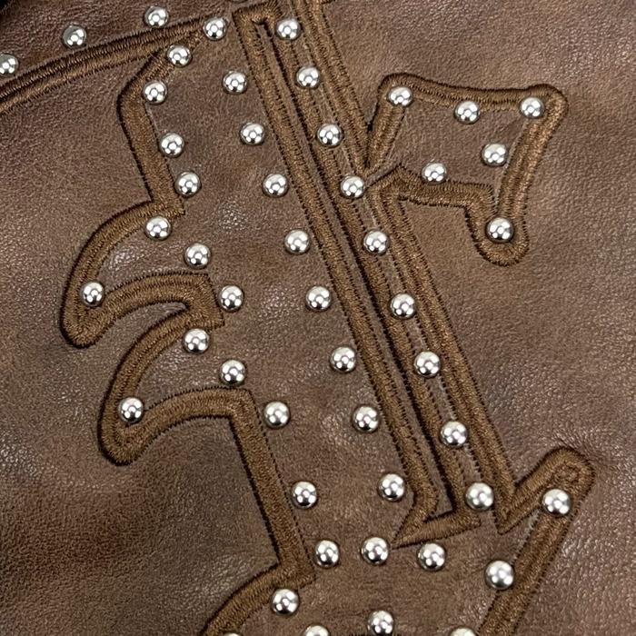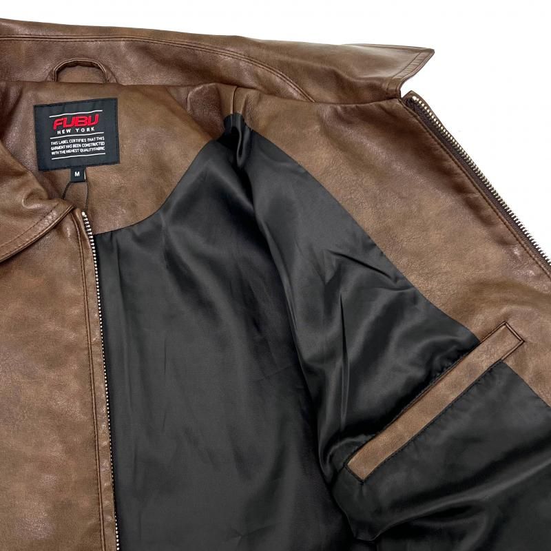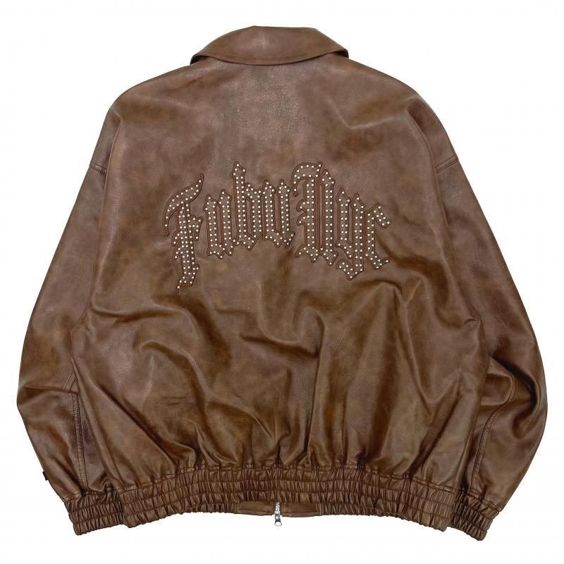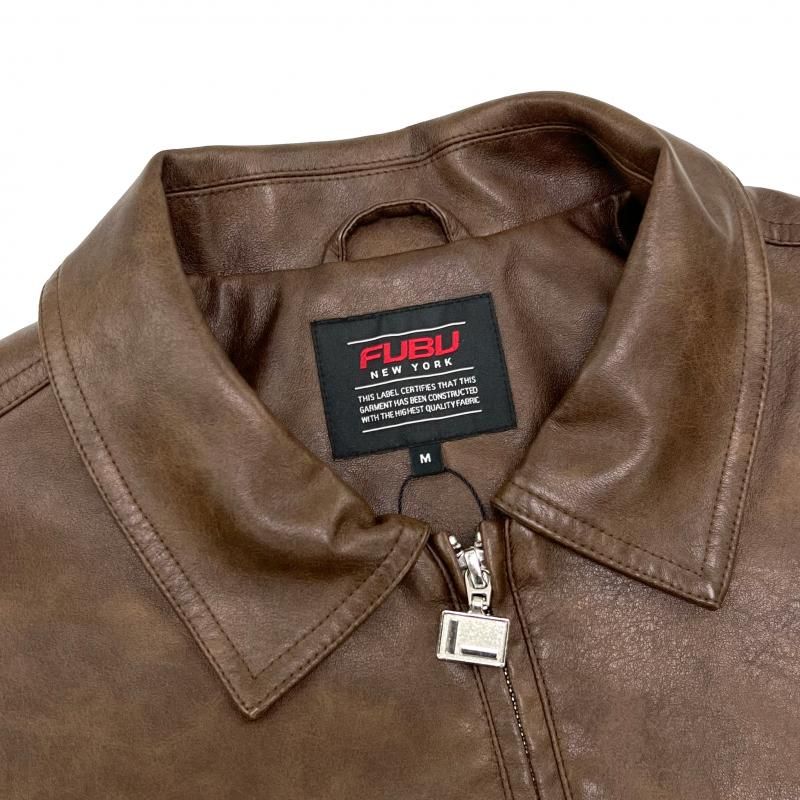 胸元にスタッズを施したF、バックにFubu nycの刺繍を施したPUレザージャケット。
