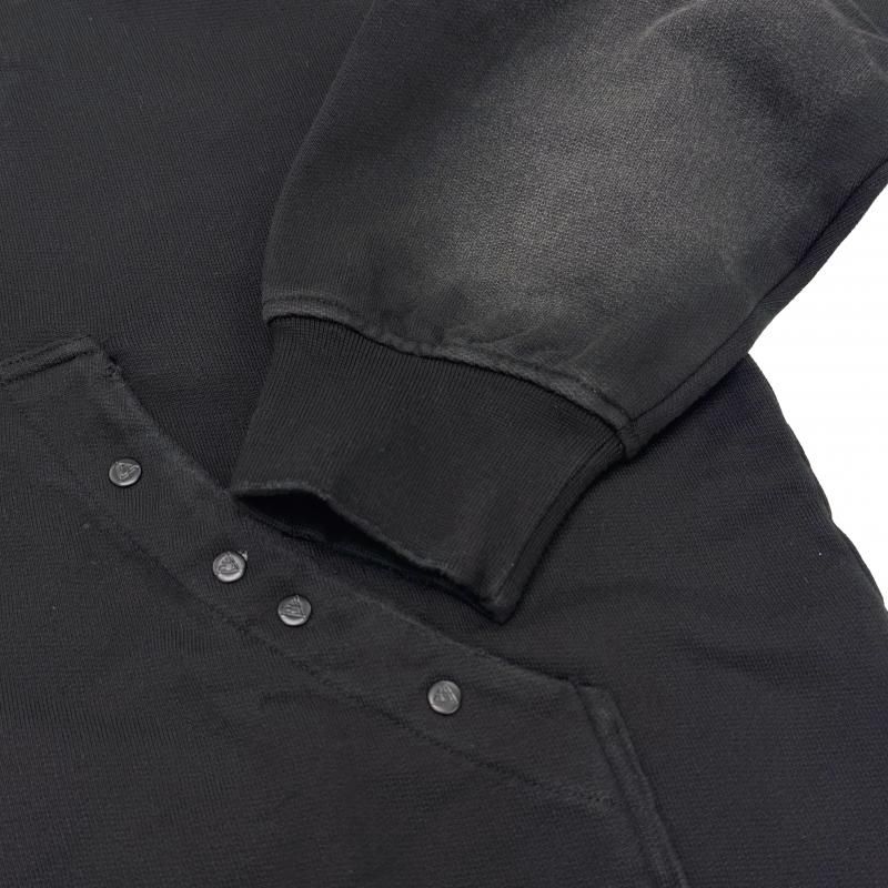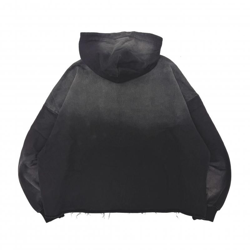 裏起毛のないフレンチテリー生地を使用しており、ダメージ加工、バイオウォッシュ加工が施されています。