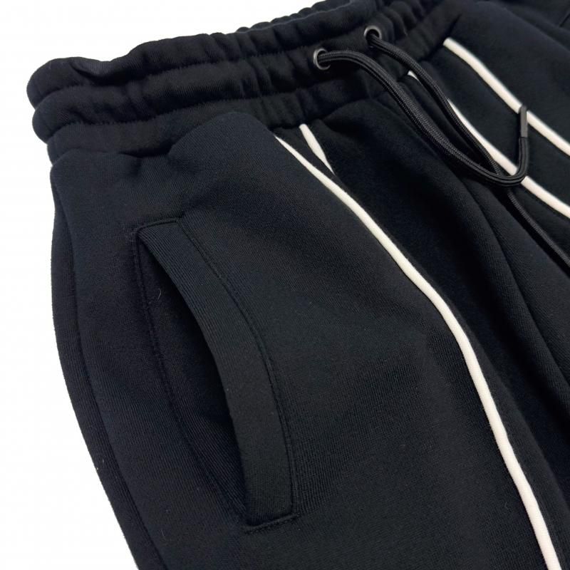 随所にパイピングによるアクセントを施したスウェット生地のセットアップ。
