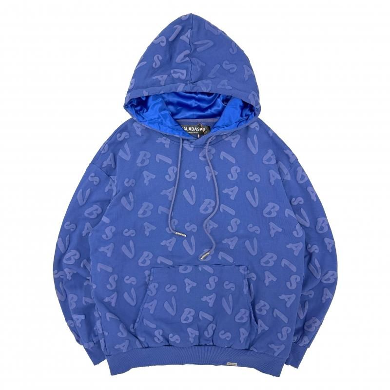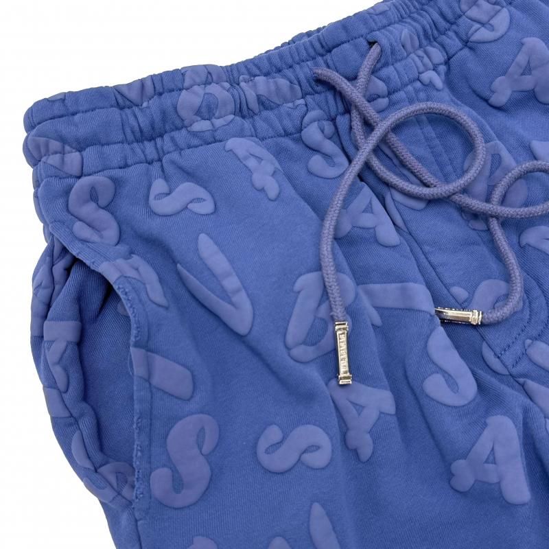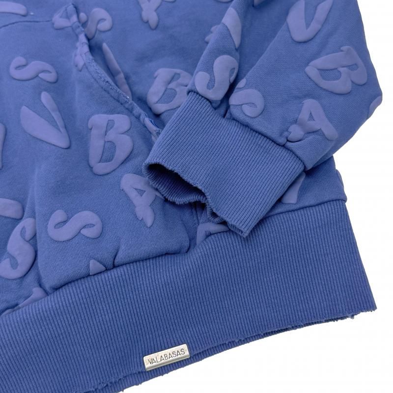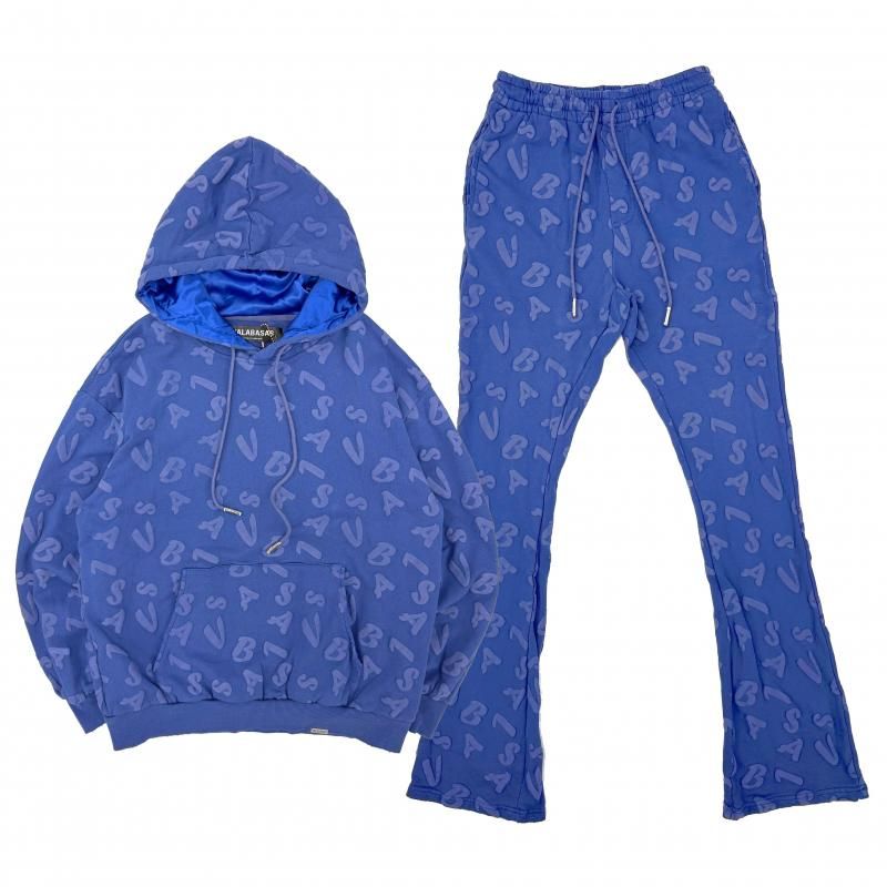 VALABASASのアルファベットを発泡プリントでランダムに落とし込んだ総柄のセットアップ。