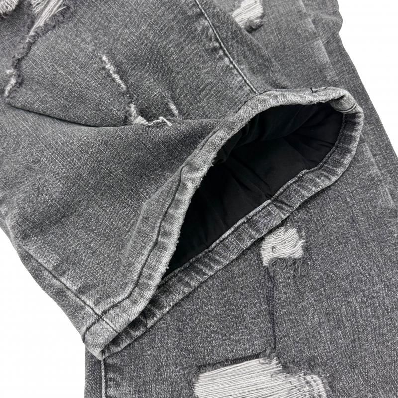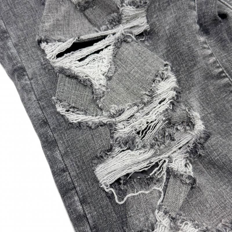 前後にダメージ加工を施した程よい太さのワイドシルエットのデニムパンツ。