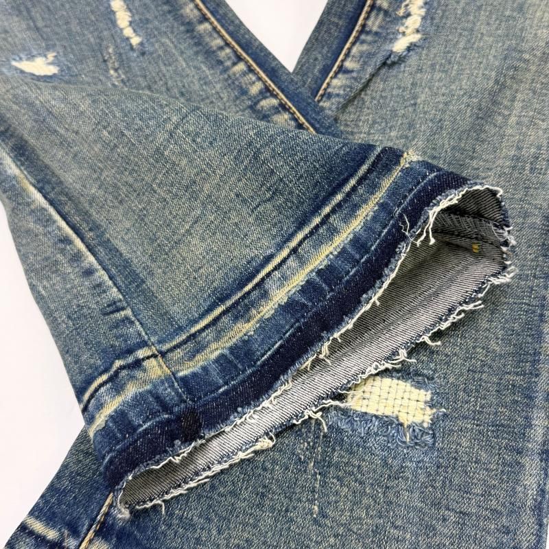 ストレッチの効いたデニム生地を使用、ヴィンテージウォッシュ加工が施されています。