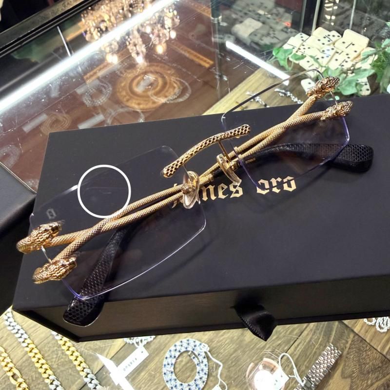 リムレスレンズを噛む 2 匹の巻き付いた蛇をモチーフにした、JAMES OROの有名な蛇のデザインを継承したSERPENT II。