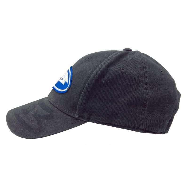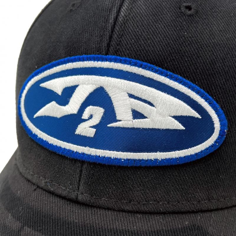 フロントにオーバル型のワッペンが施された6パネルキャップ。