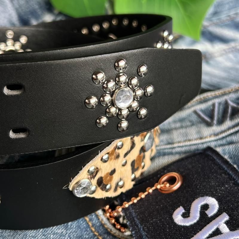 ウエスタン調なデザインにスタッズを施したベルト。