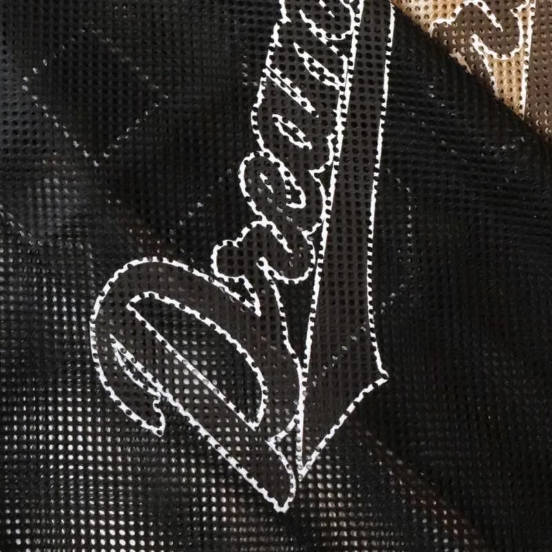 ブランドネームやナンバリング、ラインをプリントで落し込んだメッシュジャージ。