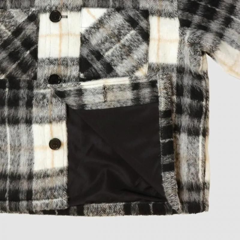 チェック柄のモヘアー生地を用いたクロップド丈のフランネルジャケット。