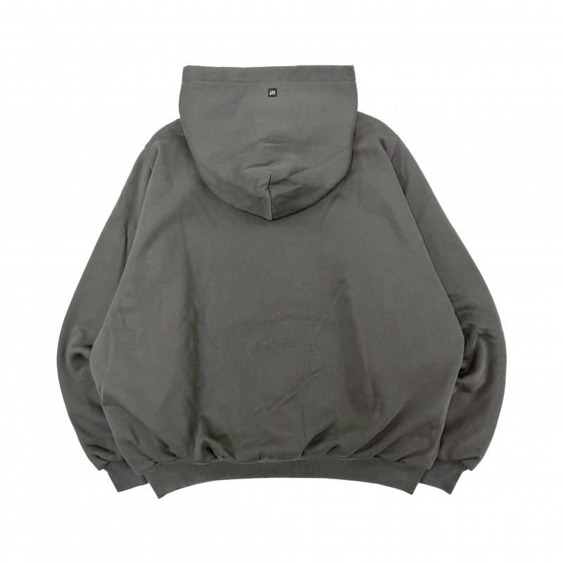身幅を広く用いたオーバーサイズシルエットなパーカー。