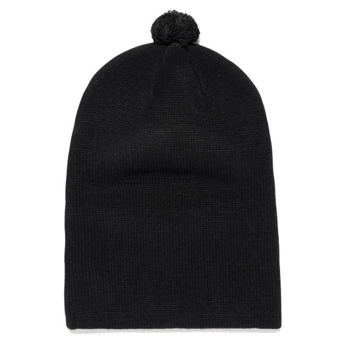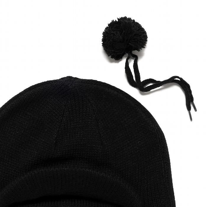 暖かなアクリル素材を用い、軽量でソフトなツバ、紐付きの取り外し可能なポンポンが施されています。