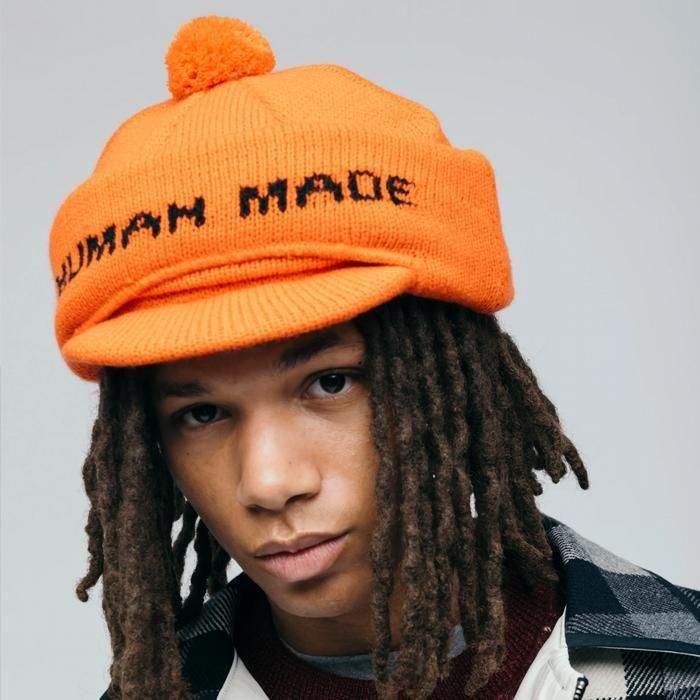 折り返すと、ジャガードのロゴが特徴的なニットキャップに変化します。