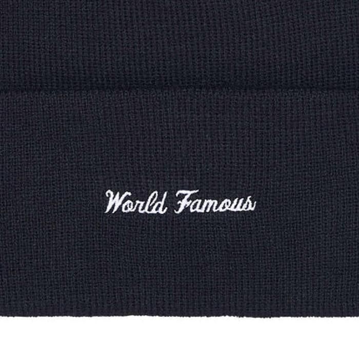 BOXロゴの刺繍を施したニットキャップ。