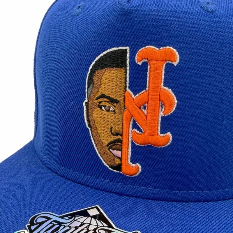フロントにナズのフェイスデザインとクイーンズ地区を本拠地とするMLBチーム「メッツ」のロゴをハーフ&ハーフで刺繍、サイドにはマイクを用いたKing of NYのデザインと1stアルバムのタイトルとクイーンズの街並みデザイン、バックにNEW YORKの文字が刺繍で施されています。