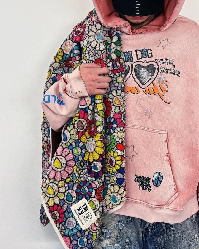 村上隆の作品を代表するフラワーデザイン「お花」を総柄で落とし込んだブランケット。