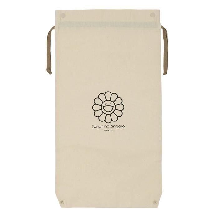 羽織りでの使用も用意となるスナップボタンが施されており、「お花」がワンポイント施された巾着袋が付属します。